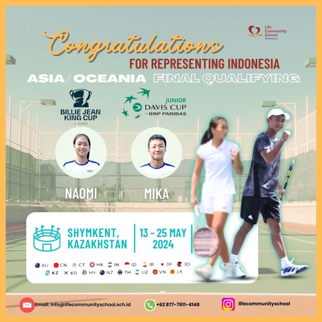 Joachim Mika Gunawan and Naomi Gracelyn Tio Represent Indonesia at Asia/Oceania Final Qualifying 08 May 2024 Congratulations to our students, Joachim Mika Gunawan and Naomi Gracelyn Tio, for representing Indonesia's U16 team alongside their teammates! They're all set to compete in the Asia/Oceania Final Qualifying Junior Billie Jean King Cup and Junior Davis Cup in Shymkent, Kazakhstan, from May 13 to 25, 2024! Let's show them our full support and prayers! Go Indonesia! More... |