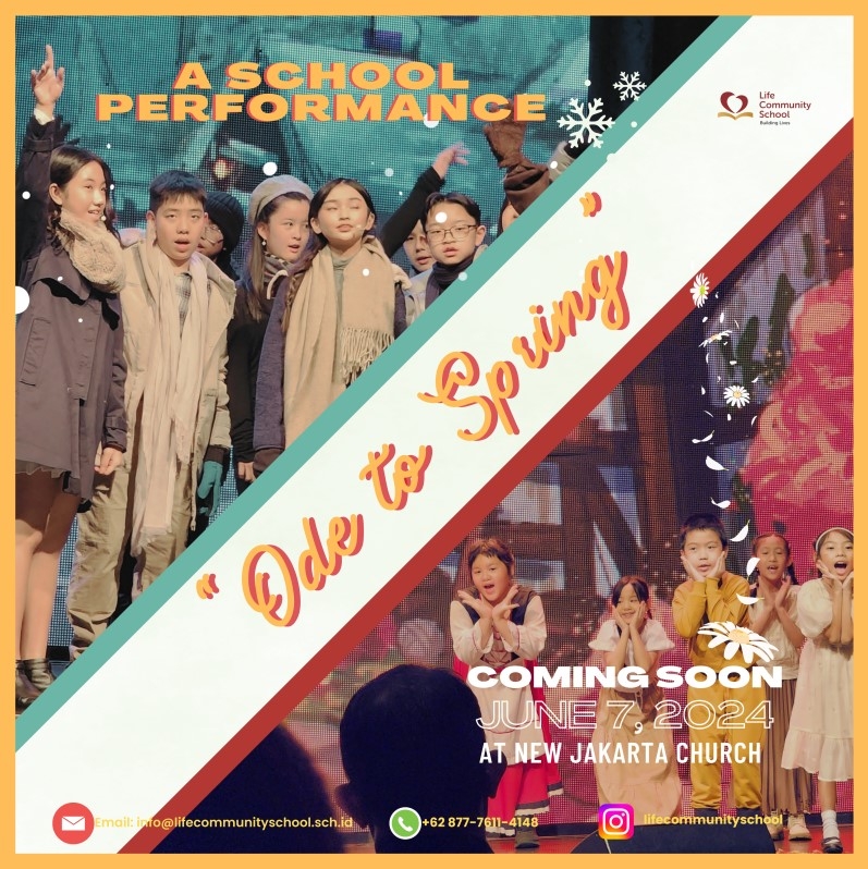 𝗢𝗻 𝗝𝘂𝗻𝗲 𝟳, 𝟮𝟬𝟮𝟰, 𝗟𝗶𝗳𝗲 𝗖𝗼𝗺𝗺𝘂𝗻𝗶𝘁𝘆 𝗦𝗰𝗵𝗼𝗼𝗹 𝗽𝗿𝗲𝘀𝗲𝗻𝘁𝘀 𝗮 𝗵𝗲𝗮𝗿𝘁𝘄𝗮𝗿𝗺𝗶𝗻𝗴 𝘀𝗰𝗵𝗼𝗼𝗹 𝗽𝗲𝗿𝗳𝗼𝗿𝗺𝗮𝗻𝗰𝗲: 𝗢𝗱𝗲 𝘁𝗼 𝗦𝗽𝗿𝗶𝗻𝗴. Join us at @newjakartachurch as our talented students bring to life the enchanting tale of a village transitioning from endless winter to the vibrant bloom of spring. It's a story of hope, renewal, and the beauty of change. Don't miss this magical event! Mark your calendars and stay tuned for more details.